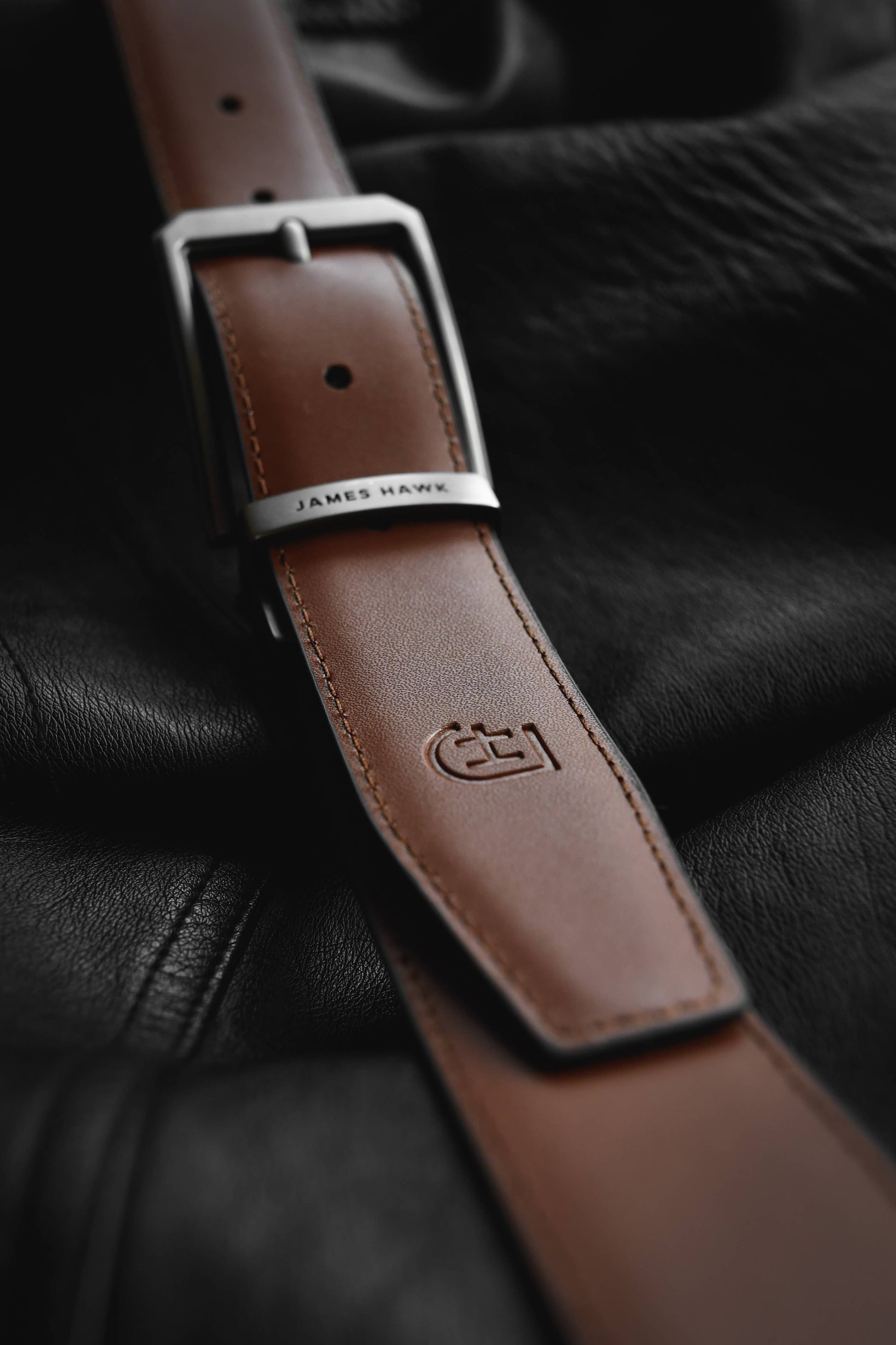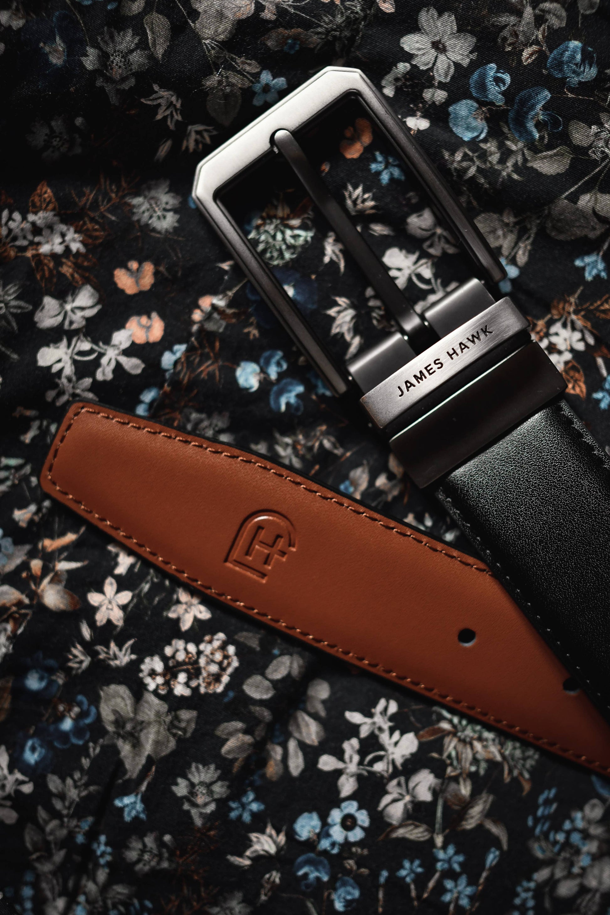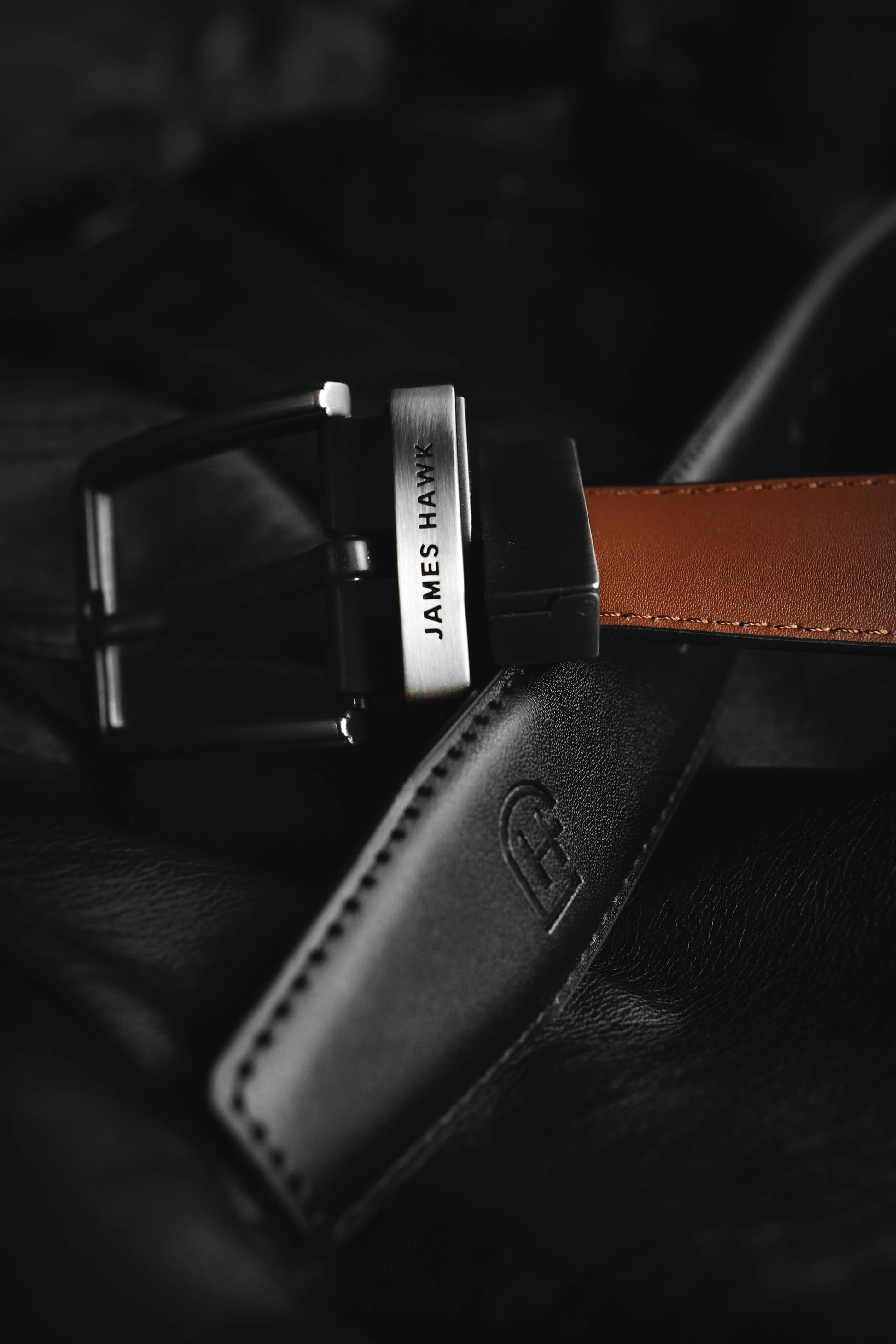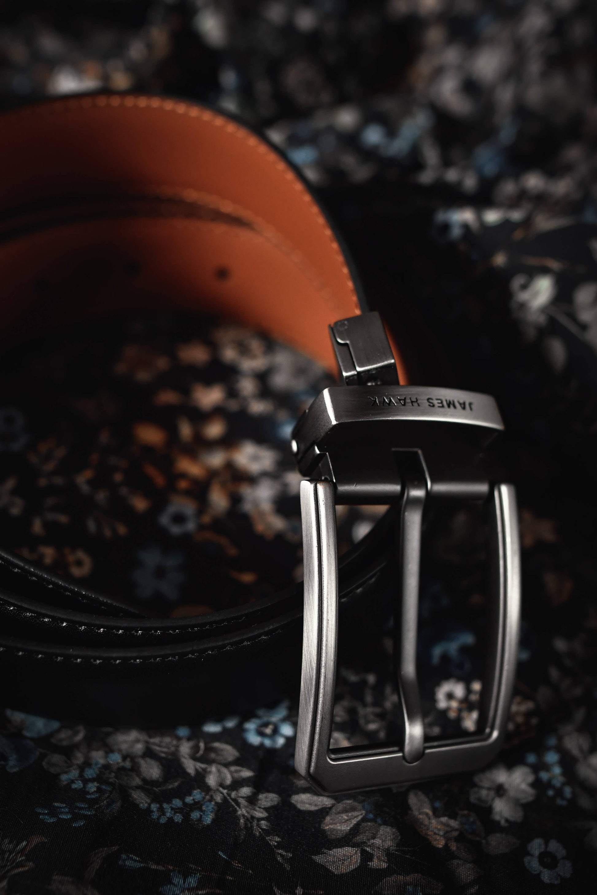 ✅ Vendbart, tofarvet bælte med grafitspænde